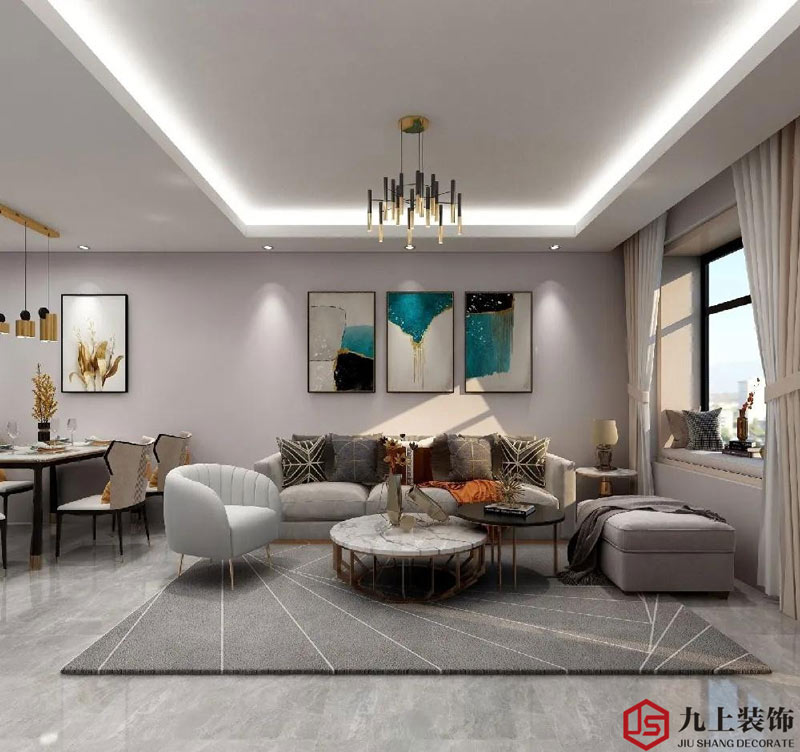 客廳的色調(diào)搭配比較柔和,突顯冷淡感的同時又散發(fā)著韻味,靠墻位置擺放了一個灰色雙人沙發(fā),加上墻上掛畫以及奶白色的墻面,簡單的畫面卻有別致的美感。