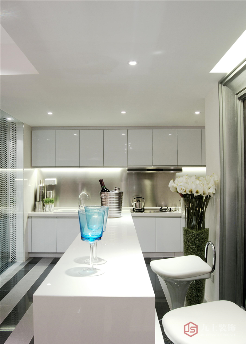 餐廳-餐廳整體整潔大方,開放式廚房配合吧臺(tái)顯得別致