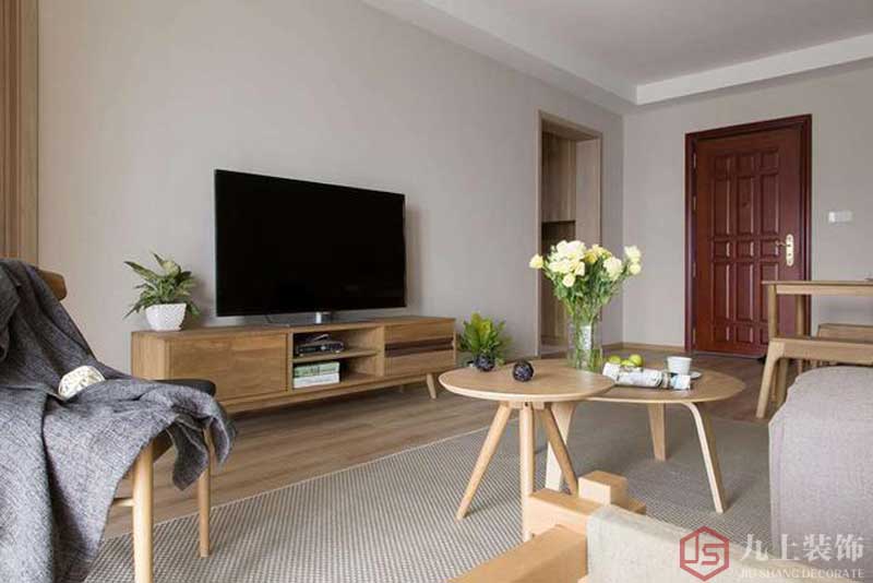 電視背景墻也是大白墻,并沒有做過多的裝飾,一個(gè)電視矮柜看上去也不錯(cuò)