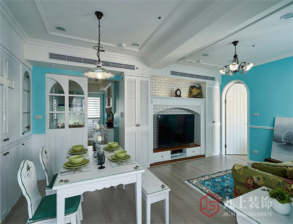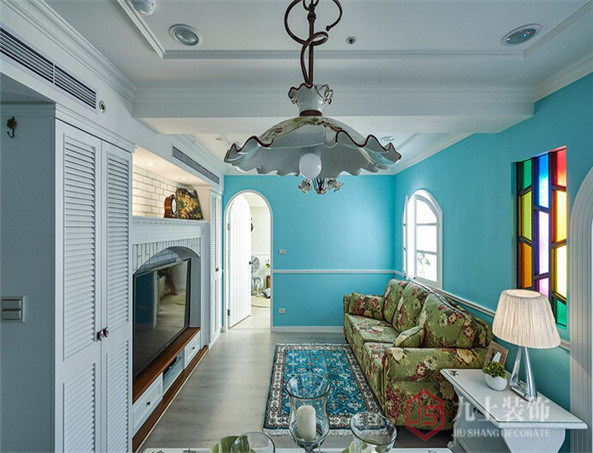 以家傳情,滿足女主人對(duì)鄉(xiāng)村居家的向往,讓淡藍(lán)光暈染出一片幸福景象,是男主人的浪漫。電視背景陳以白色文化石,打在散發(fā)柔白療俞力的鄉(xiāng)村暖度。