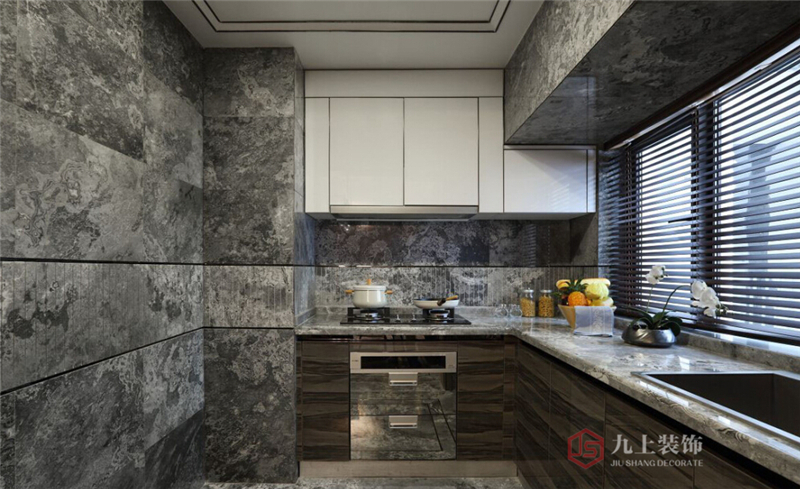 廚房設(shè)計(jì)主要以灰色為主,相對(duì)淺色系櫥柜和墻磚更耐臟并耐看