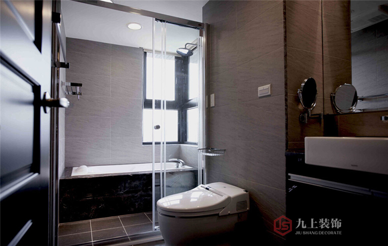 衛(wèi)生間設(shè)計(jì)得功能性強(qiáng),且簡潔,灰色系盡顯現(xiàn)代線條感