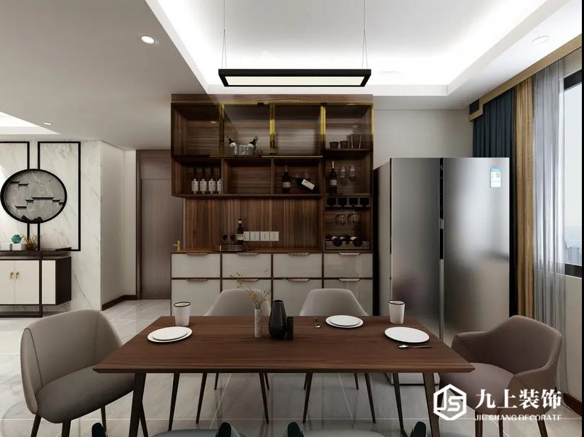 其實(shí)這個(gè)案例中,客餐廳是一整塊區(qū)域空間,在規(guī)劃上,客廳作為一個(gè)家的顏值擔(dān)當(dāng),沒有定做過多的柜子,而是主要以展示為主。