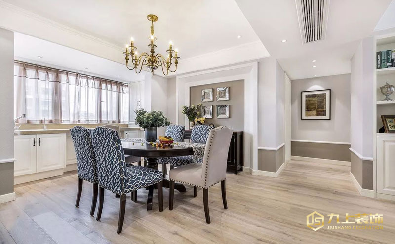 客廳與餐廳之間不設(shè)隔斷,僅以家具作自然分割,過道動(dòng)線更加合理。