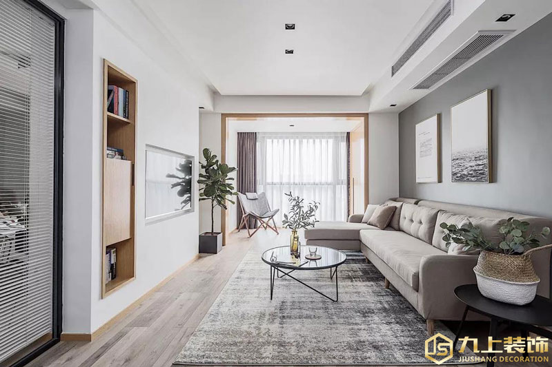 中央空調(diào)正對(duì)著沙發(fā),讓炎炎夏日不再悶熱,既節(jié)省了安裝空調(diào)的空間,又讓客廳看起來簡潔大方。
