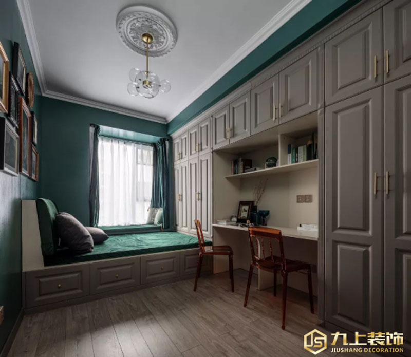 書房選用了榻榻米與一體式壁柜搭配,合理利用空間,統(tǒng)一協(xié)調(diào),最大限度的使用空間。