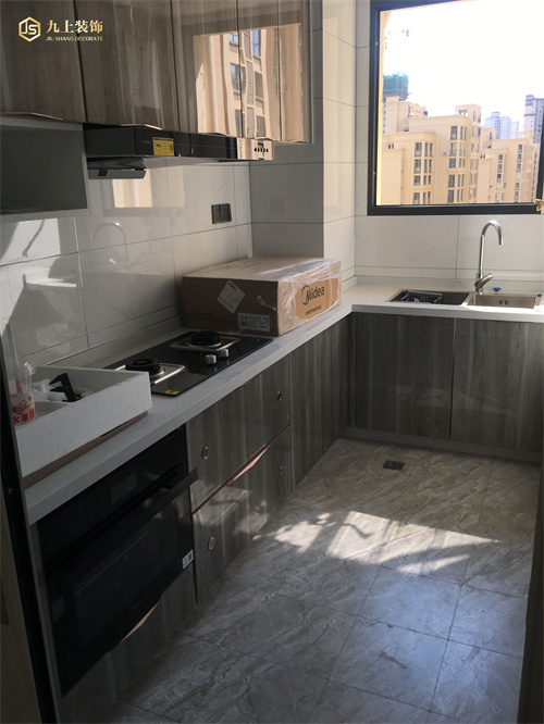 門檻石、找平、防水、包雙水管、鋁扣板吊頂、平開門、櫥柜、墻地磚、地漏、水槽龍頭、照明燈、煙機(jī)灶具、冰箱。