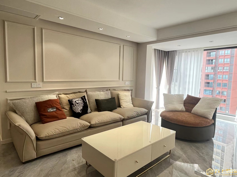 客廳,陽臺納入客廳區(qū)域,擴大使用面積與采光,雙眼皮頂面設計顯得簡潔大氣,簡單的石膏線條沙發(fā)背景墻造型,搭配科技布的淺咖色沙發(fā)。