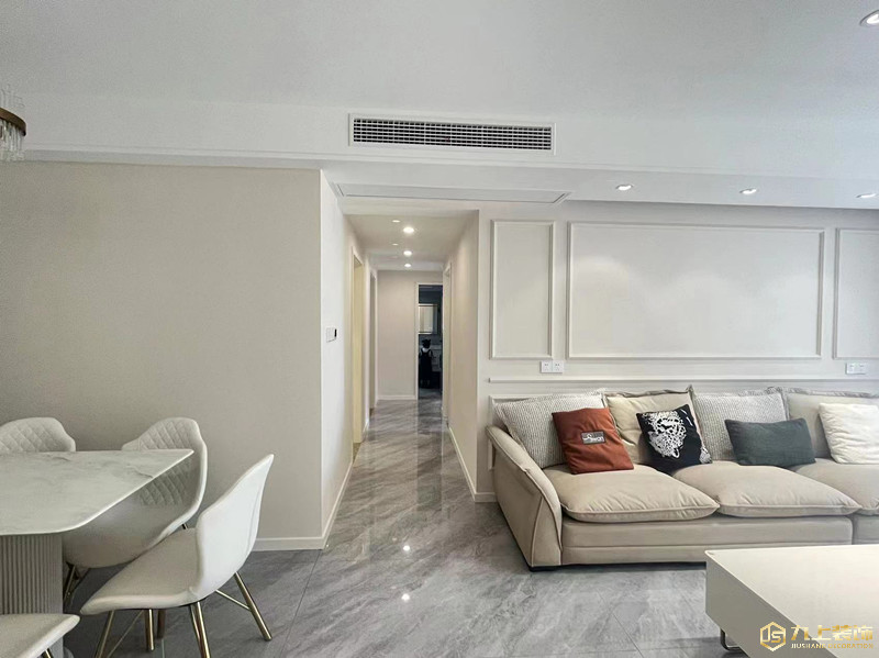 從客廳到餐廳過入戶動線,整個空間風格保持一致.
