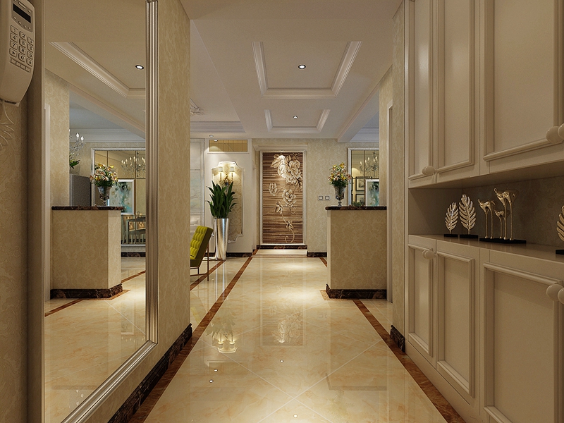 白色的儲物柜大大的滿足了一套家的基本儲物需求,簡約的歐式門板,烘托著上面的歐式天花造型