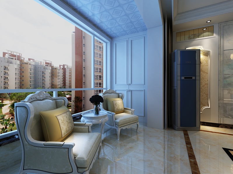 以白色為主的陽臺,沒有復(fù)雜的花紋,擺上兩張沙發(fā),一個休閑茶幾,坐在這里喝喝茶,欣賞窗外的景色,很是愜意。