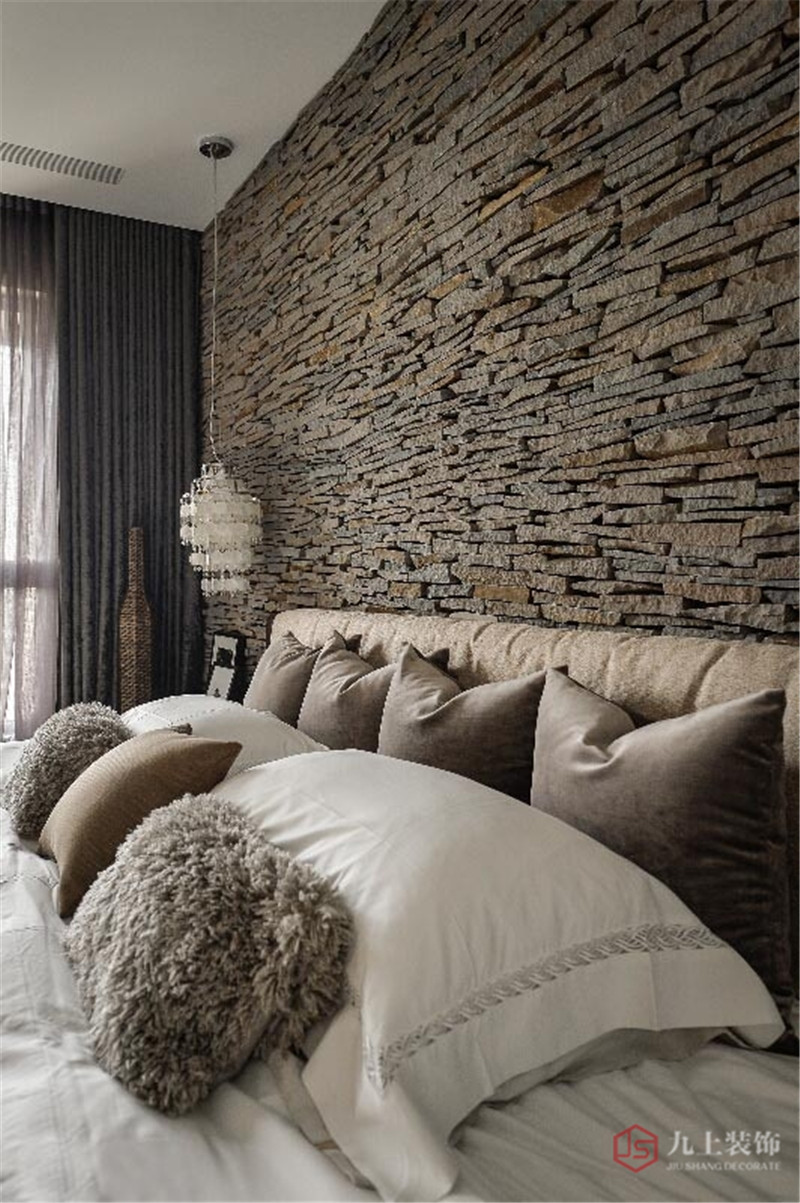 原石的堆疊換來主臥床頭自然而粗獷的觸覺感受,別有一番前衛(wèi)的時(shí)尚風(fēng)味