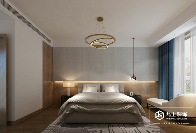 主臥床頭背景墻考慮嵌入式燈帶,明亮又比較溫馨。