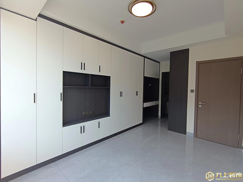 主臥空間延續(xù)灰色主調(diào),色彩度更加柔和,整個(gè)空間氛圍如夢(mèng)似幻,優(yōu)雅中不失靈動(dòng)。大理石背景墻細(xì)膩的紋路與木質(zhì)地板相映襯,鋪展出高品質(zhì)的生活空間,落地窗設(shè)計(jì)讓整個(gè)臥室更加通透明亮。墨綠的床體與白色床品以明亮的色調(diào)點(diǎn)綴了空白的畫面。