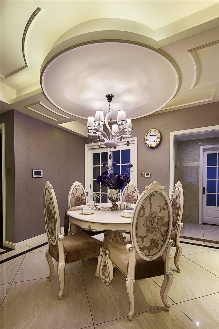 餐廳-宮廷風(fēng)的吊燈配上餐桌餐椅顯得特別別致和大氣