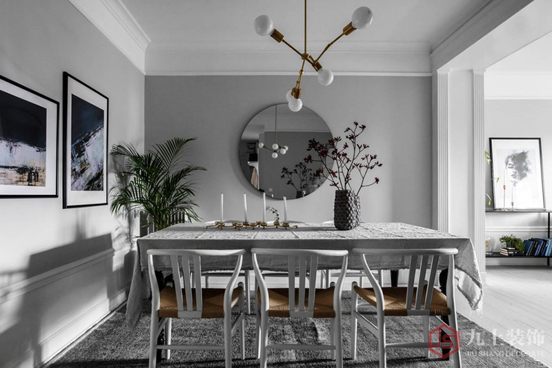 客廳給人的感覺如冬日的雪景一般,純白的雪,傲立的雪,裸粉色的窗簾的加入,讓這蕭瑟的畫面有了生機(jī)和活力。