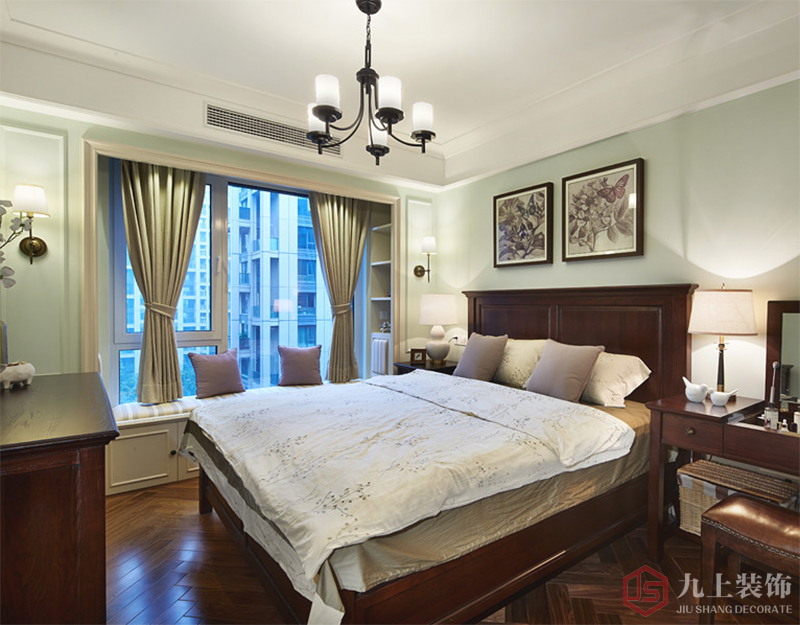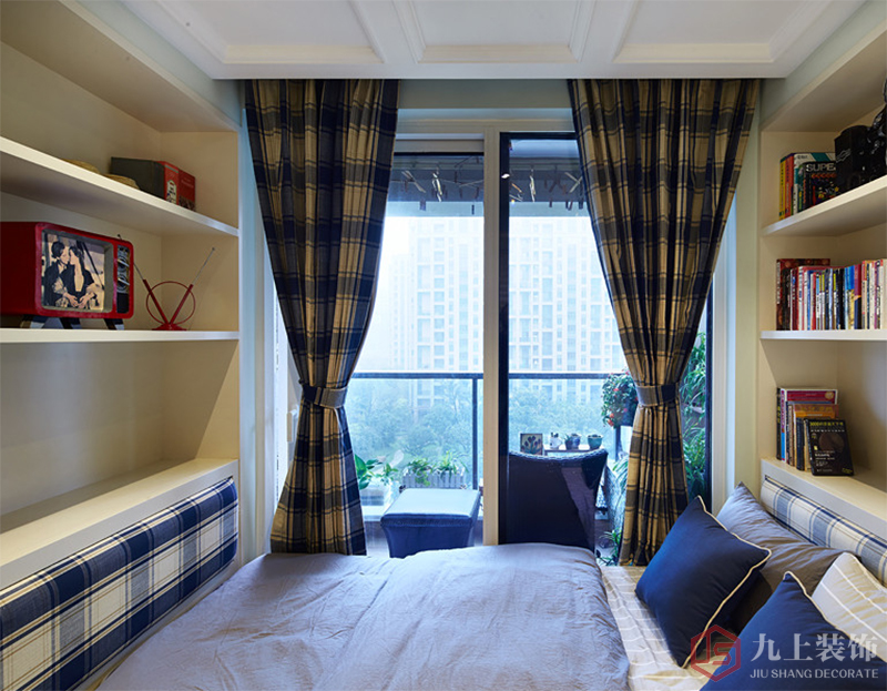寬大的落地窗,讓整個空間光線充足、墻上小的掛件讓整個空間簡單又不復雜。