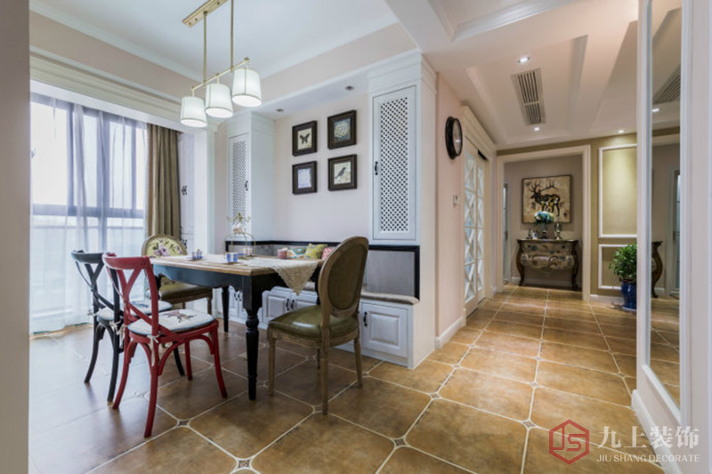 卡座既是休閑與舒適的小資格調,又是空間的合理利用,看似樣式與顏色不統(tǒng)一的餐椅,是大膽隨意與自然的淋漓呈現(xiàn)。