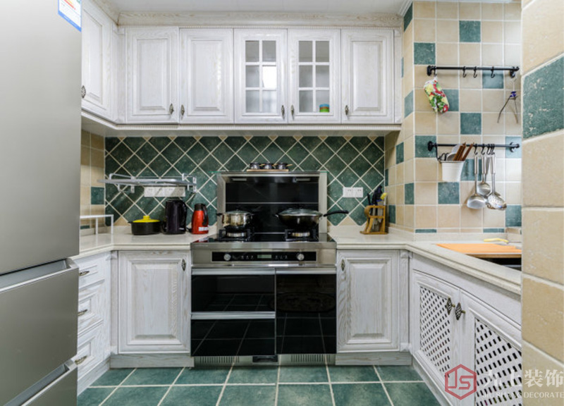 一席墨綠鋪染廚房里的味道,錯落的方格造型,那抹綠的空間,可以舒適的放下由明亮帶來的局促感。