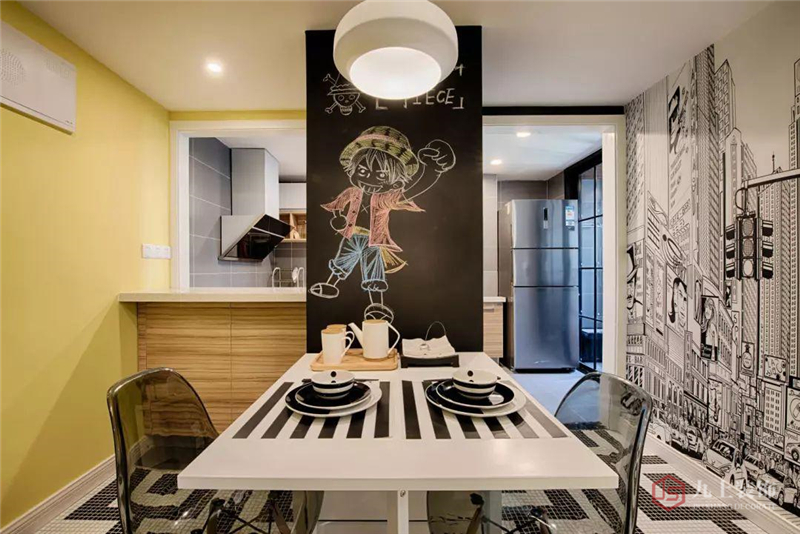 設計師將廚房和餐廳間隔墻畫上路飛,男業(yè)主的海賊王情懷得到完美釋放,無處不在的動漫熱血。