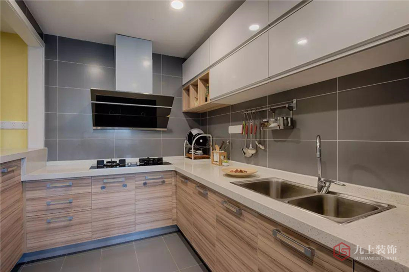 設計師對于廚房的設計很低調,追求簡潔,收拾得體,非常大氣。
