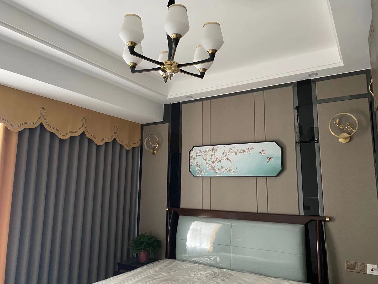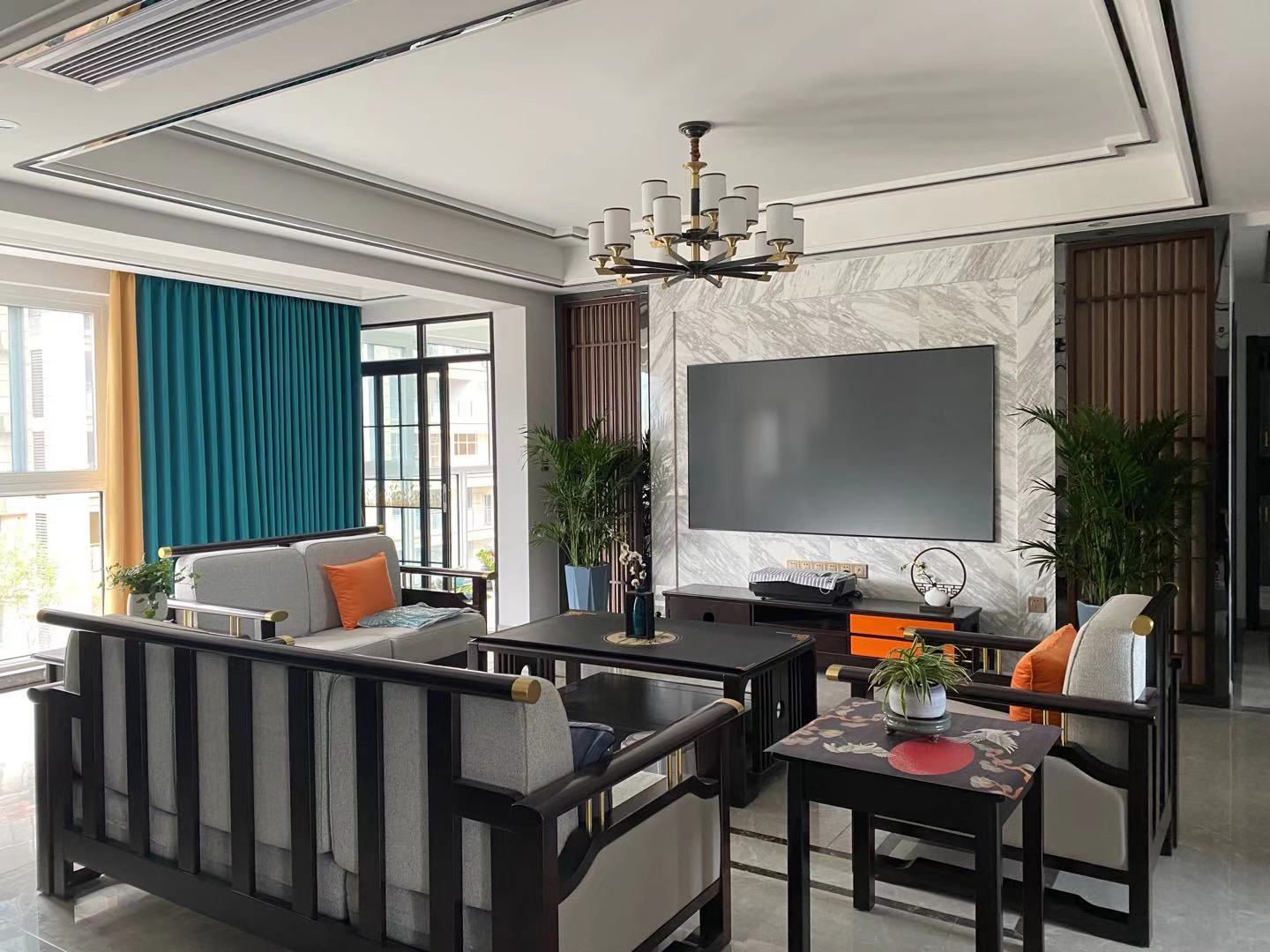 新中式風(fēng)格在設(shè)計(jì)上延續(xù)了明清時(shí)期家居配飾理念,提煉了其中經(jīng)典元素并加以簡(jiǎn)化和豐富,在家具形態(tài)上更加簡(jiǎn)潔清秀,同時(shí)又打破了傳統(tǒng)中式空間布局中等級(jí)、尊卑等文化思想,空間配色上也更為輕松自然。中國(guó)傳統(tǒng)文化,都是以對(duì)稱,方正為美。整個(gè)房間,無(wú)論是頂面墻面造型,還是家具等都是筆直的線條,方正大氣。整體給人穩(wěn)重大氣的感覺(jué)。就像中國(guó)人的骨氣,堂堂正正。頂面金屬線條,臥室門,包括電視柜茶幾等,都是以黑色,色調(diào)統(tǒng)一,又讓有感覺(jué)充滿了底蘊(yùn)。當(dāng)然為了不讓整體感覺(jué)太過(guò)沉重,在軟裝造型上,設(shè)計(jì)師選擇了一些橘紅色,藍(lán)色這樣比較跳躍的顏色。使人眼前一亮。沉穩(wěn)中帶著溫馨,才是家的感覺(jué)。