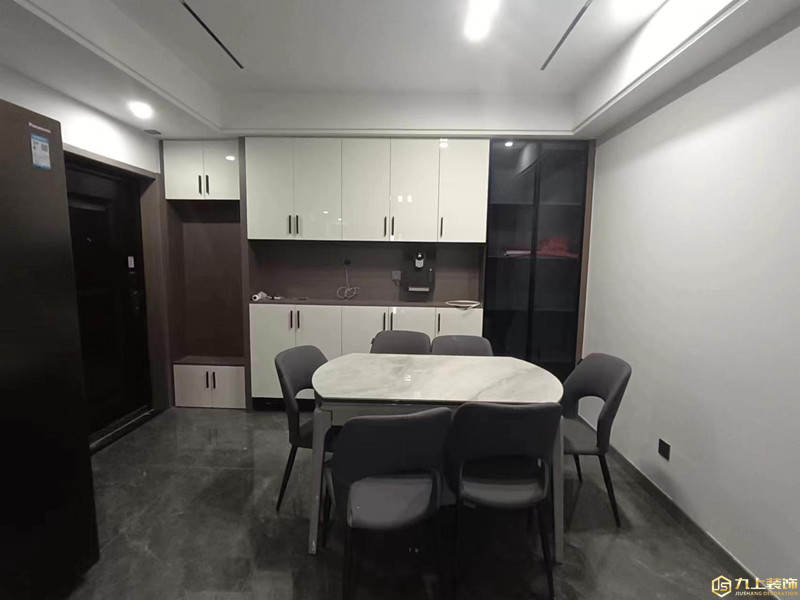 時(shí)尚餐桌椅,黑白配餐邊墻,整個(gè)空間顯得現(xiàn)代而又有前衛(wèi)感。