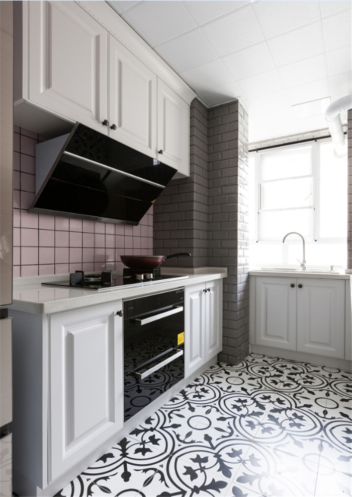 廚房-白的的櫥柜和磚顯得廚房干凈 整潔