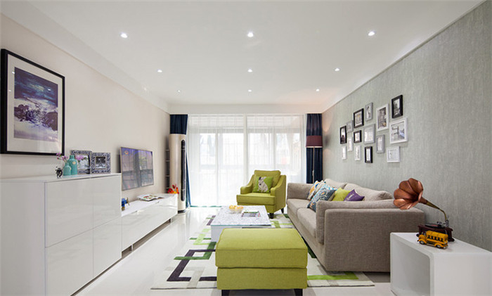 客廳-全吊頂?shù)脑O(shè)計(jì),顯得更加大氣時(shí)尚,配合淺色的家居和灰色調(diào)的沙發(fā),顯得客廳氣質(zhì)滿滿