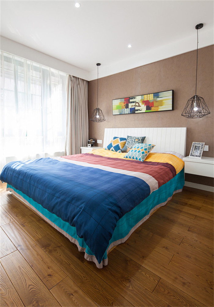 臥室-溫馨的臥室也是全吊頂?shù)脑O(shè)計(jì),兩盞獨(dú)特的燈配合整個(gè)臥室簡(jiǎn)約而不簡(jiǎn)單
