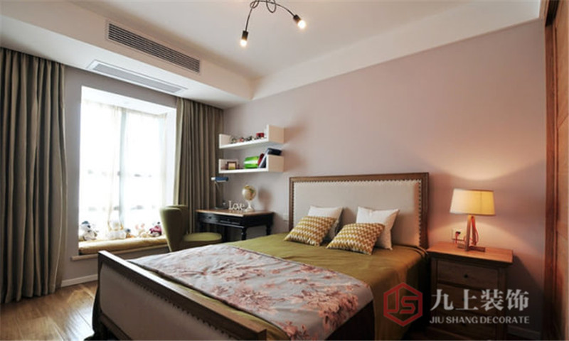 臥室床旁的木柜燈具,晚上看書也能清靜。