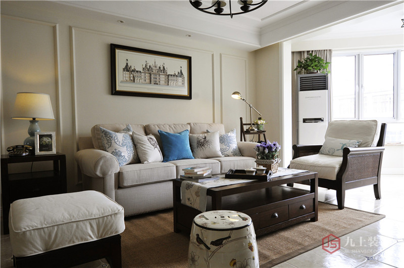 美景剛?cè)?,沁香已來。一束百合,醉了芳香無數(shù)。一如這明凈透亮的客廳,因這暖白沙發(fā)和藤編單人位而顯得格外清爽,腳凳與靠墊的中式花鳥元素使本就明媚的空間,多了些許清婉可人