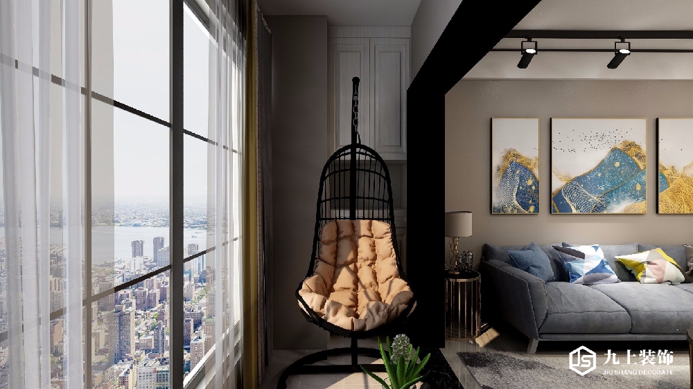 為了滿足客戶對生活品質的要求。陽臺采用大落地窗,視野開過,光線充足。配以獨立的吊椅,愜意無比。喝茶,聊天,午休,賞景,自由自在。