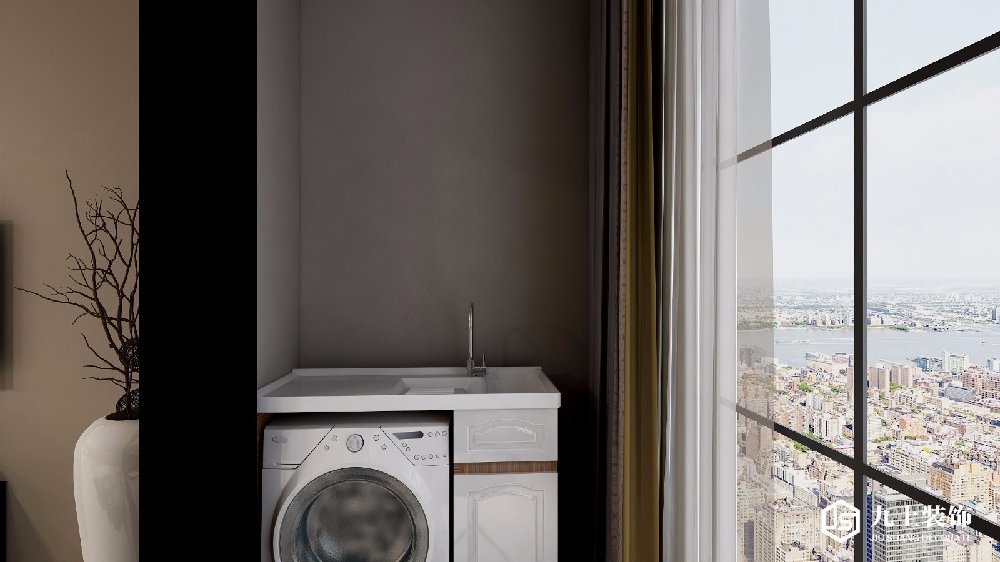 陽臺除了休閑還增加了功能性。成品的洗衣臺鑲嵌洗衣機,既美觀,又實用。