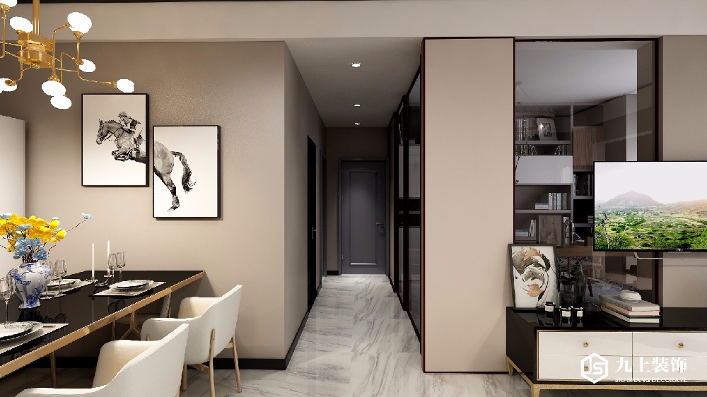 過道鏈接書房客廳餐廳臥室,簡約線條,增加空間感。