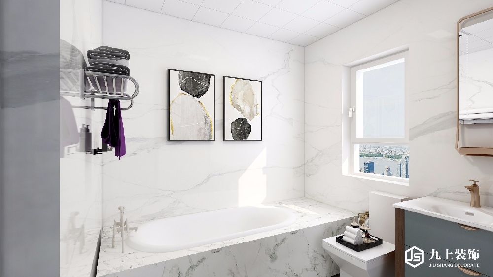 次臥選擇了浴缸,磨紋墻磚和浴缸完美融合,極大的增加了視覺空間感。