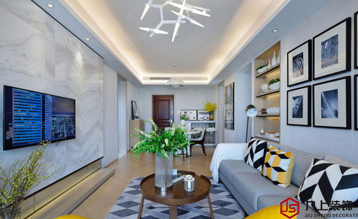 灰色調(diào)讓空間安靜,或許太過(guò)于安靜,黃色的桌旗和靠墊點(diǎn)綴著這雅致的空間