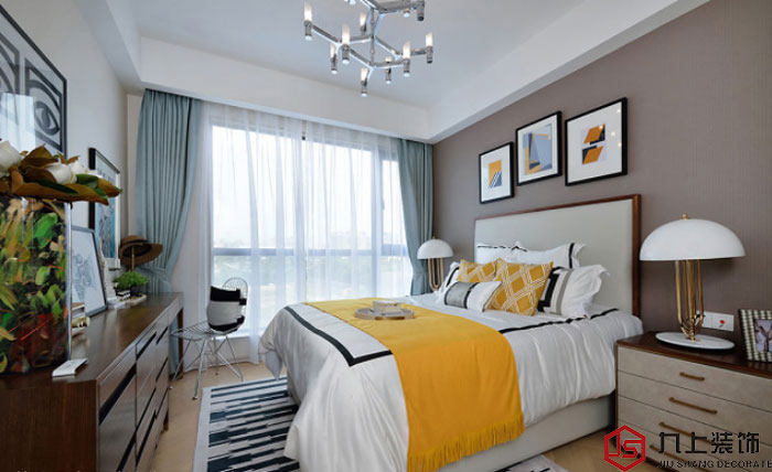 次臥在裝修布置上以簡(jiǎn)潔清爽為主,好夢(mèng)入眠。