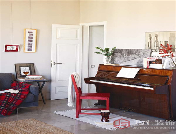 復(fù)古的鋼琴是業(yè)主的最愛,枚紅色的凳子代表著好心情