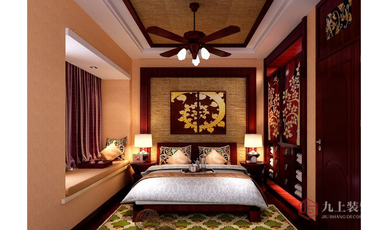 臥室暖色系偏深色,東南亞貴族氣息濃郁。