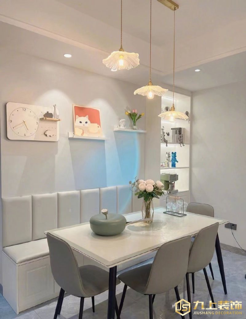 餐廳以白色為主,加紅色點綴