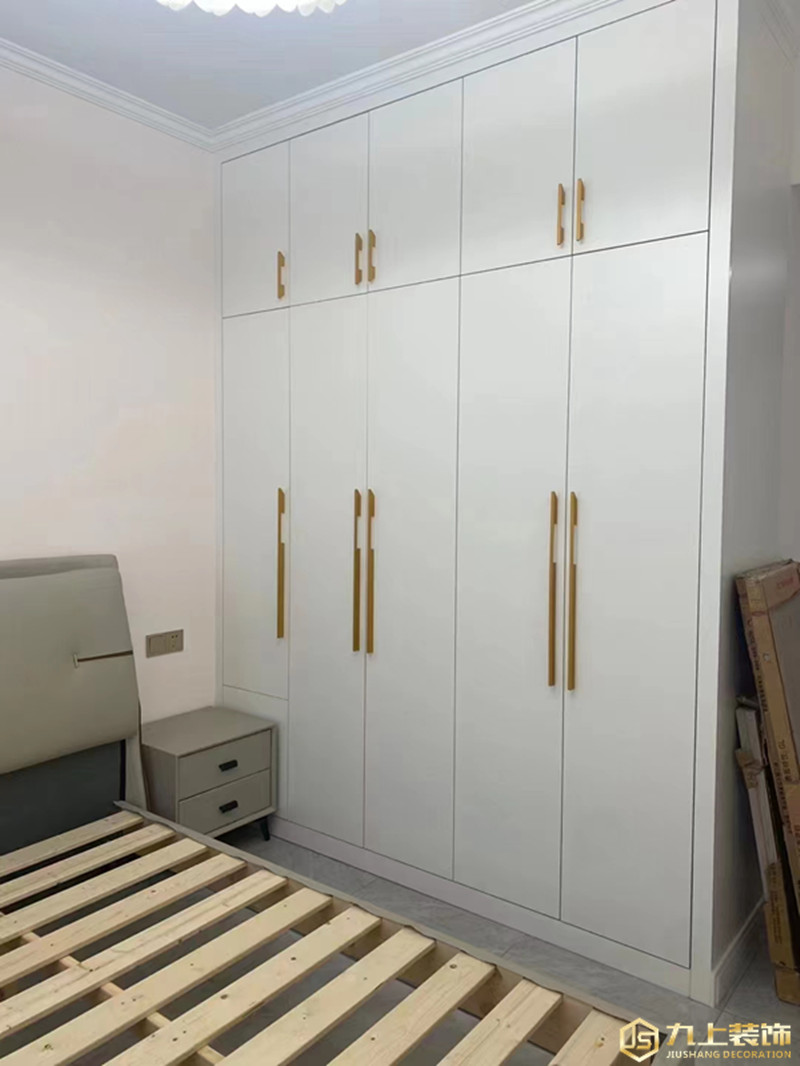臥室,業(yè)主比較喜歡溫馨的搭配,衣柜整體白色搭配金色的拉手。