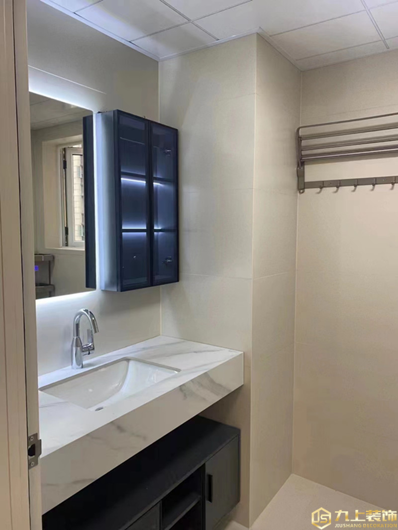 廁所,深灰+淺灰+白色的過度色調(diào),一點點的小設(shè)計,就讓浴室變得簡約而柔和.