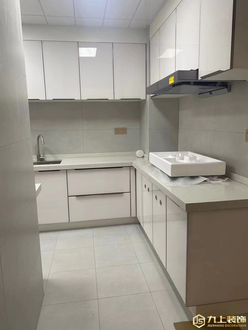 廚房,整體淺灰色+白色,看起來比較有高級感。