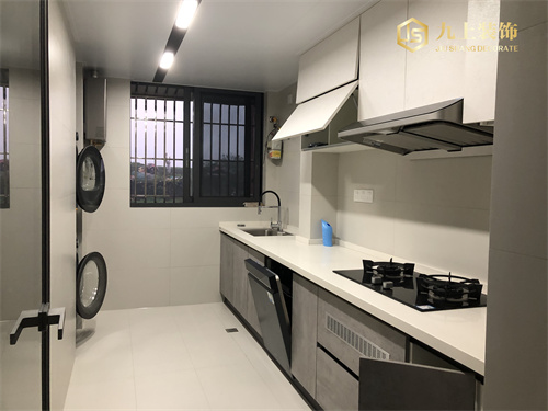 門檻石、找平、防水、包雙水管、鋁扣板吊頂、平開門、櫥柜、墻地磚、地漏、水槽龍頭、照明燈、煙機灶具、冰箱。