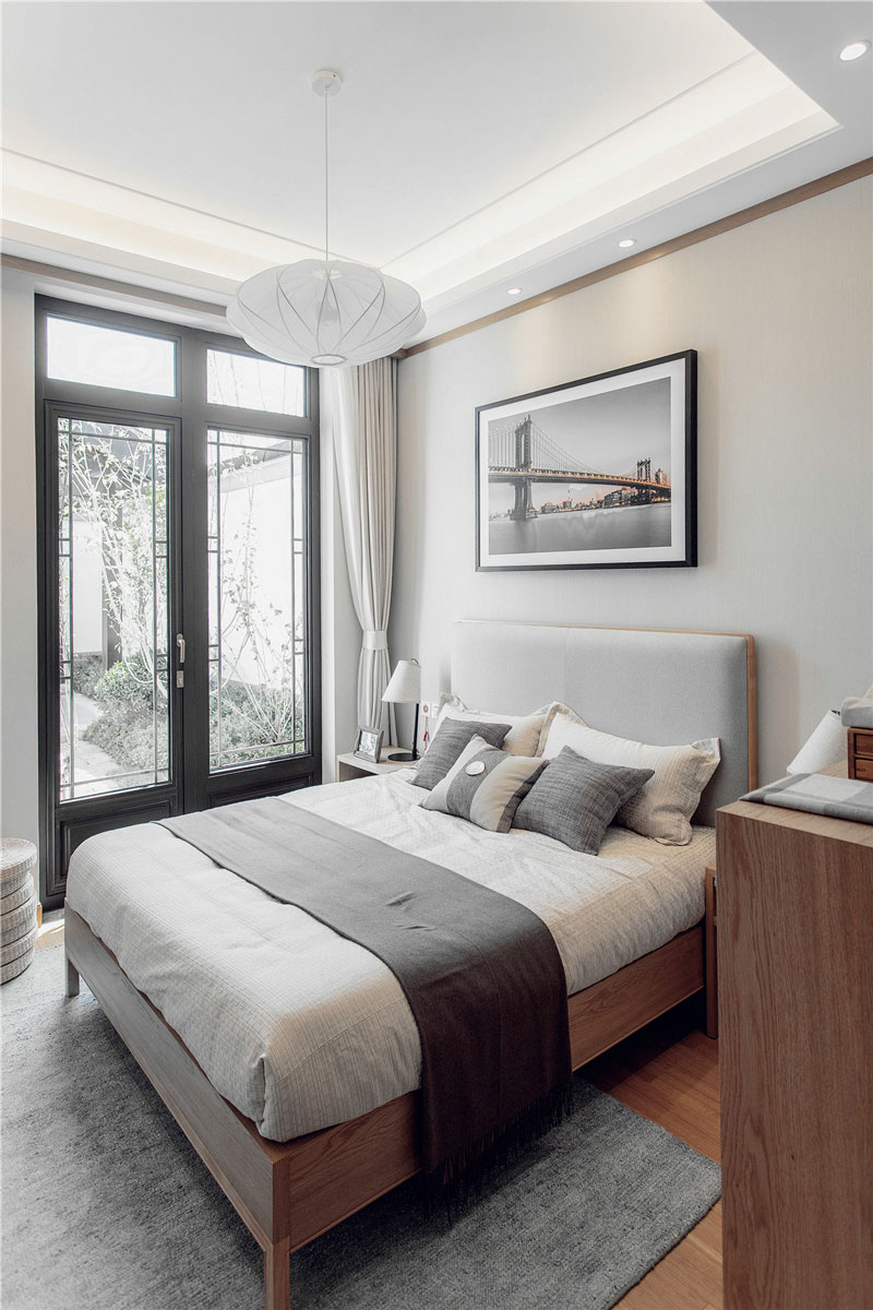 臥室延續(xù)整體設(shè)計(jì)氛圍,自然、樸實(shí)、靜謐。