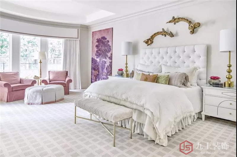 臥室 - 整個(gè)臥室干凈整潔,香芋色的藝術(shù)畫和整體搭配更加協(xié)調(diào),臺(tái)燈和床頭裝飾透露出濃濃的公主范兒