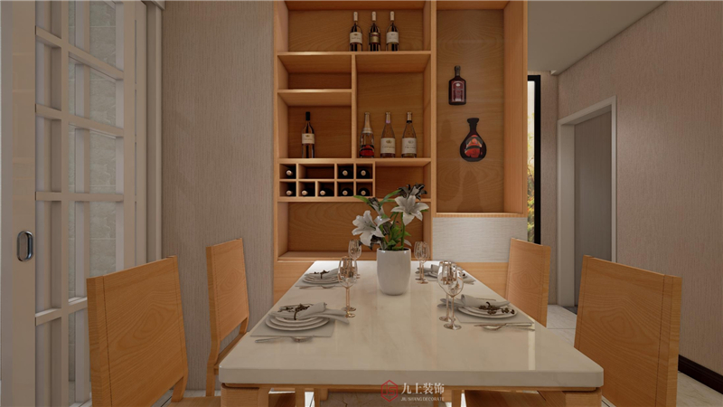 餐廳與客廳之間利用了走道進行了劃分,與廚房也利用推拉門進行了隔斷,使用起來很是方便。