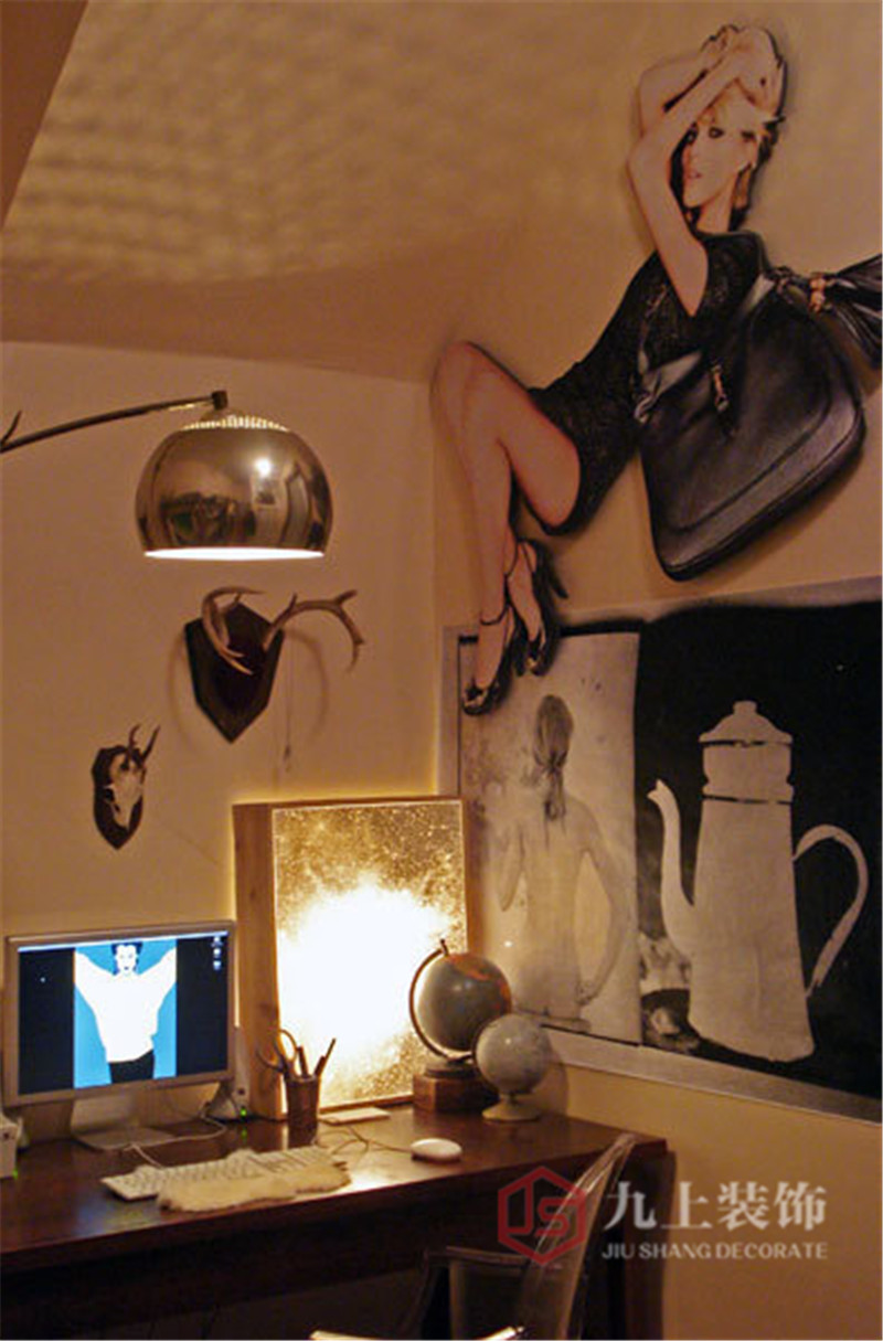 主人對(duì)素描、掛畫情有獨(dú)鐘,他將時(shí)尚和復(fù)古兩種格調(diào)統(tǒng)一到書桌上,通過掛畫、飾品充分展現(xiàn)出來(lái)