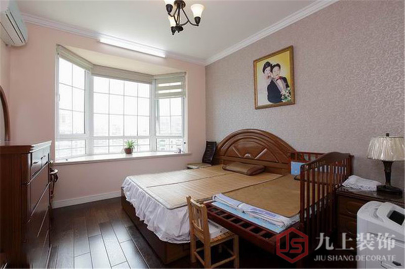 主臥注重實用性,干凈的墻壁上用暖色和壁紙裝飾,簡單且美觀